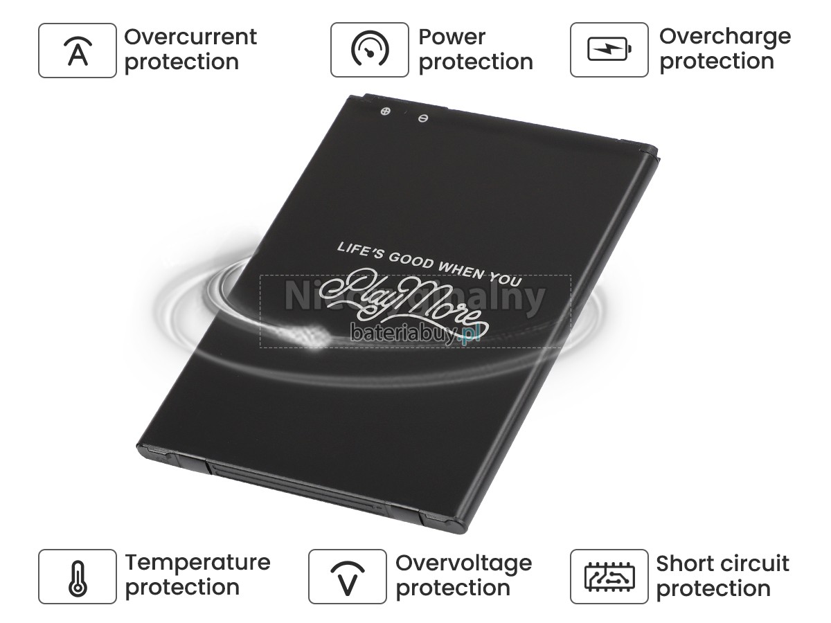 - Obudowa baterii wykonana jest z wysokiej jakości tworzywa sztucznego, które idealnie dopasowuje się do urządzenia LG.