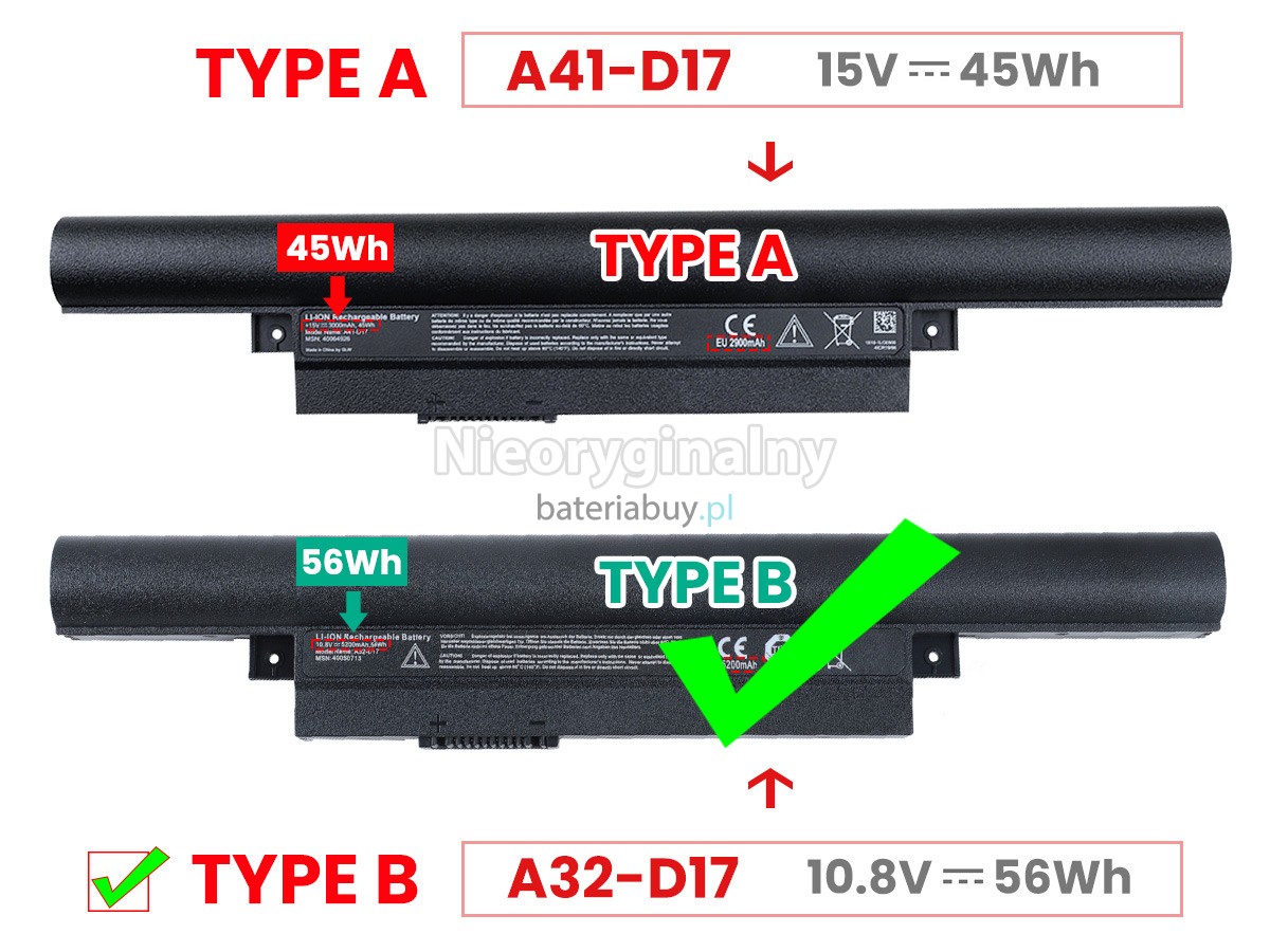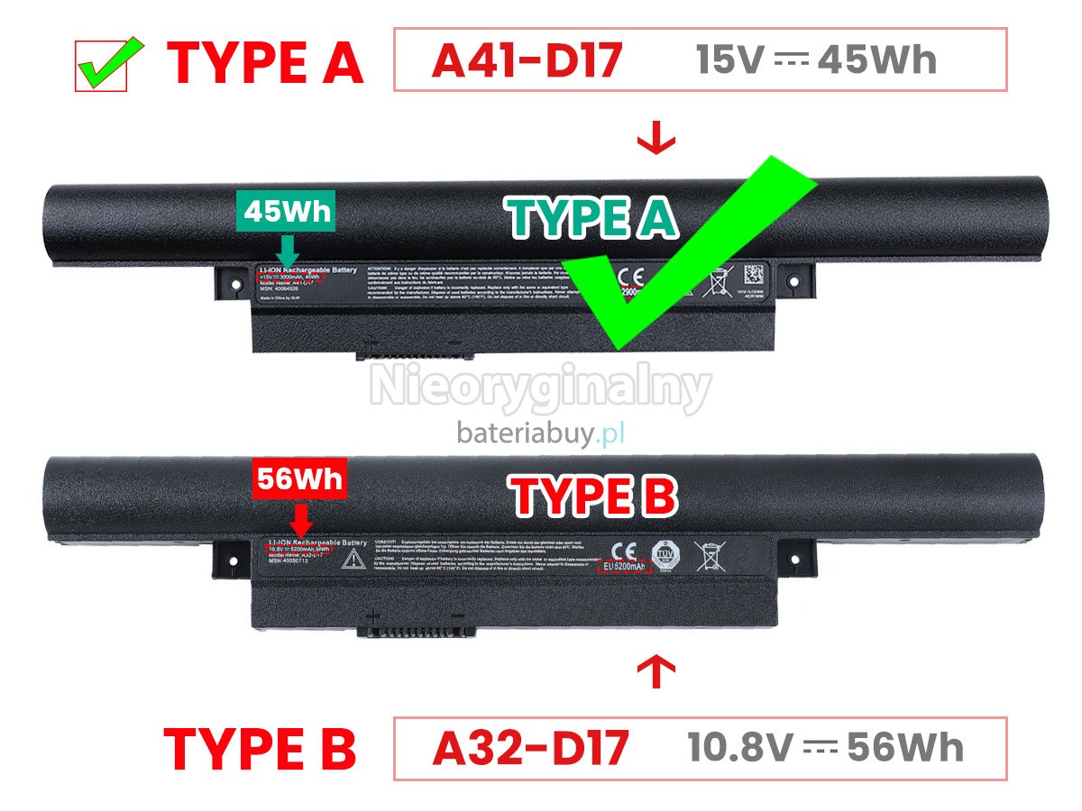 - Będziesz mógł kupić bateria do laptopa Medion A41-D17 w najbardziej przystępnej cenie, zapewniamy roczną gwarancję i 30-dniową gwarancję zwrotu pieniędzy za baterię.