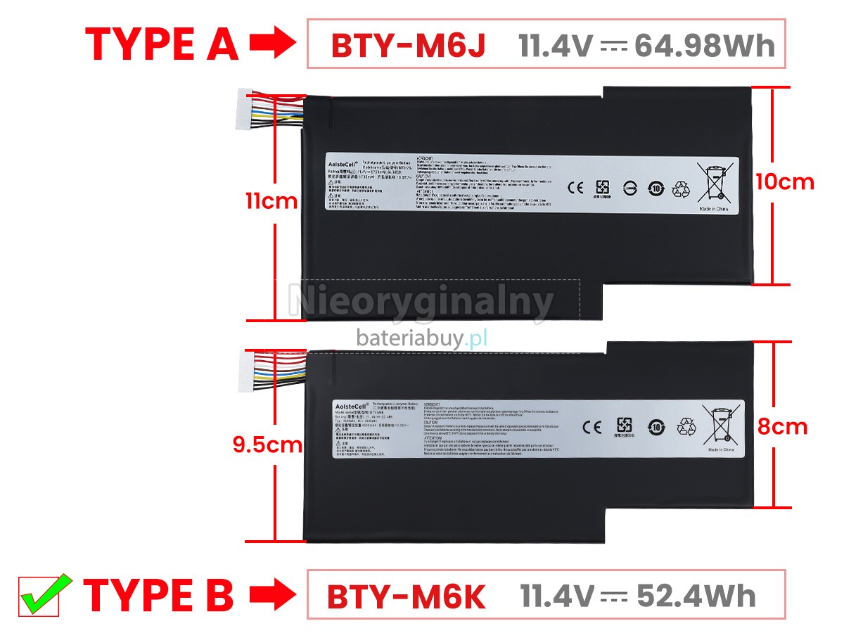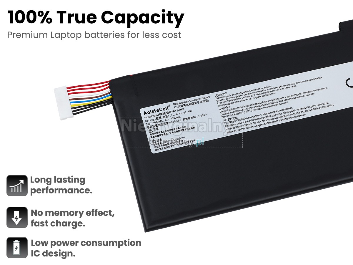 - Ta bateria do wymiany laptopów firmy MSI to nowy produkt (używany jako oryginalne akcesorium) i jest w 100% zgodny z laptopem.