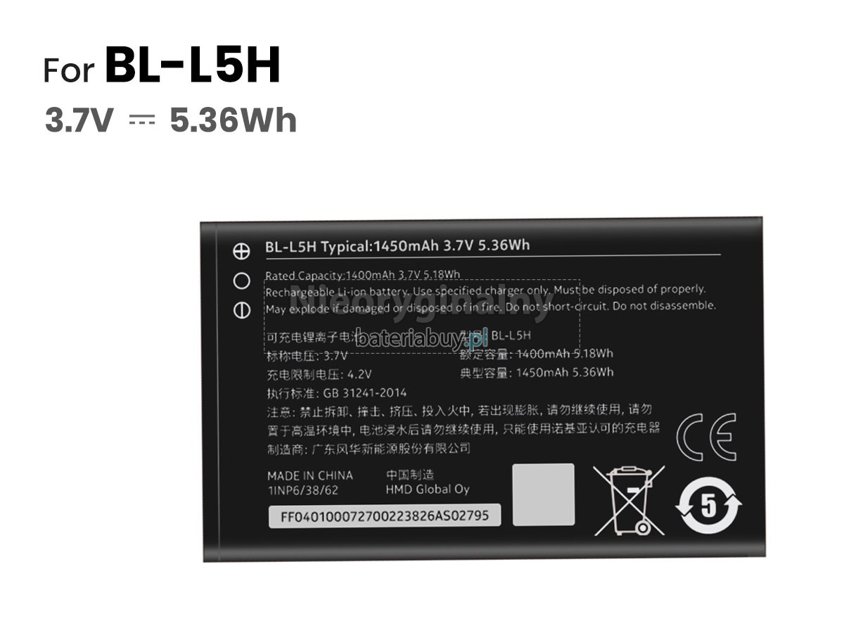 - Wymienna bateria Nokia 125 wykorzystuje najwyższej jakości ogniwa litowo-jonowe i komponenty, zapewniając szybsze ładowanie oraz dłuższą żywotność.