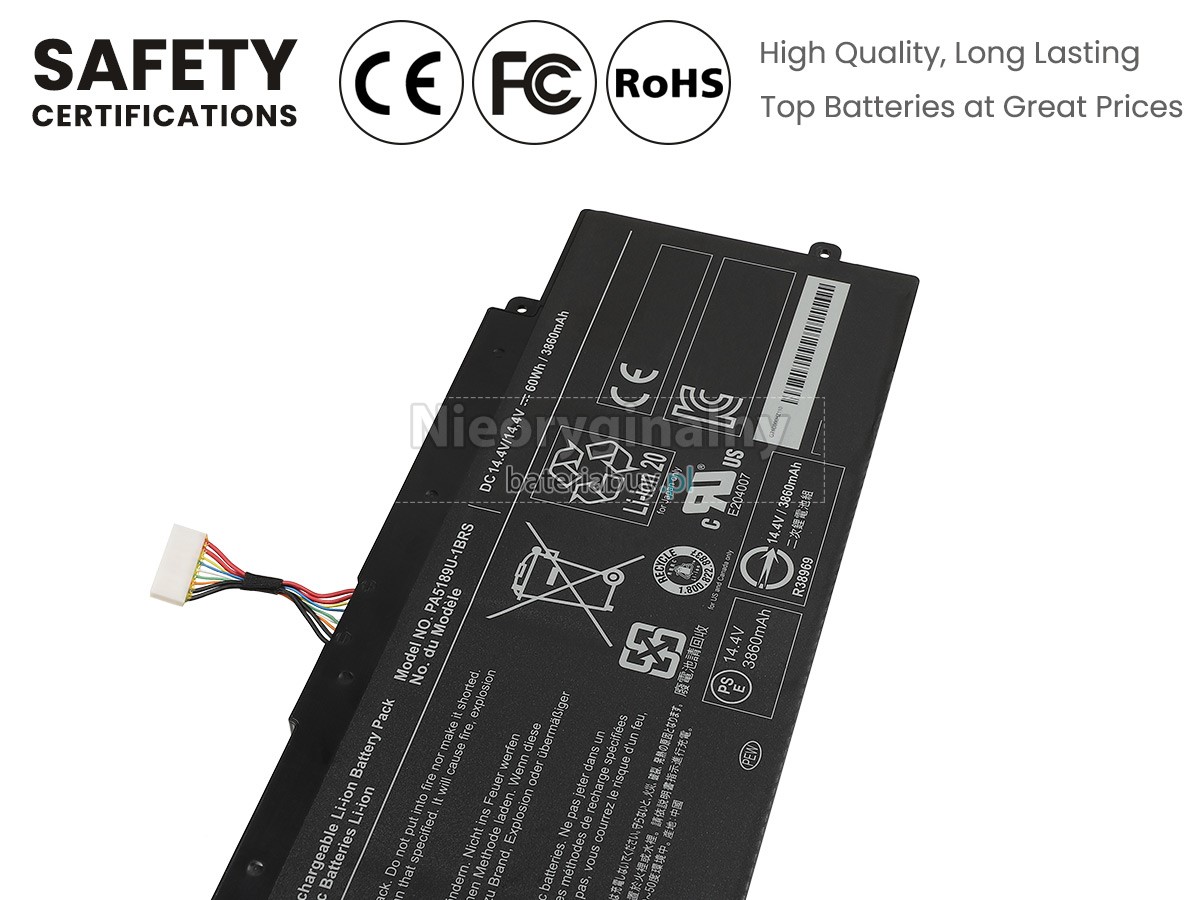 - Wymienna baterii w laptopie Toshiba Satellite P55W-B5162SM wykorzystuje najwyższej jakości akumulatory litowo-jonowe i komponenty do szybszego ładowania i dłuższej żywotności.