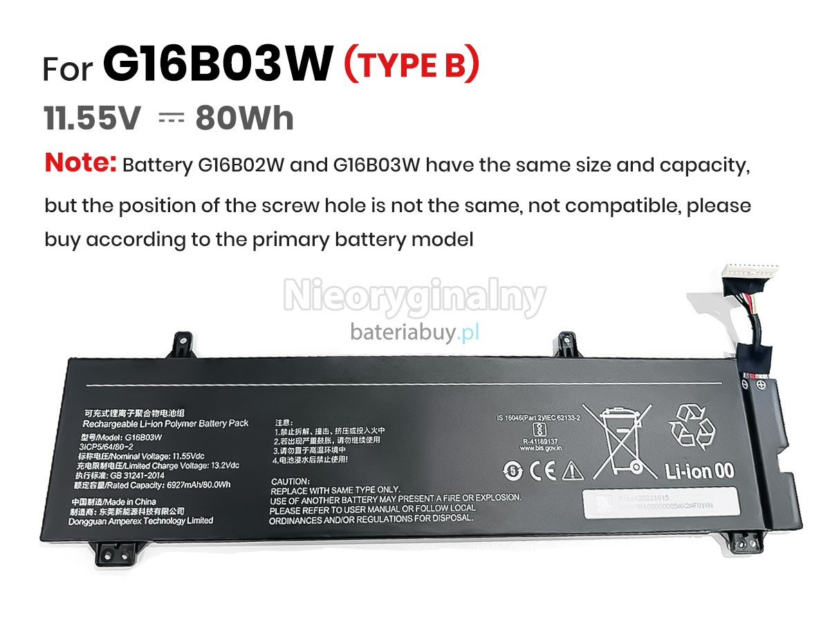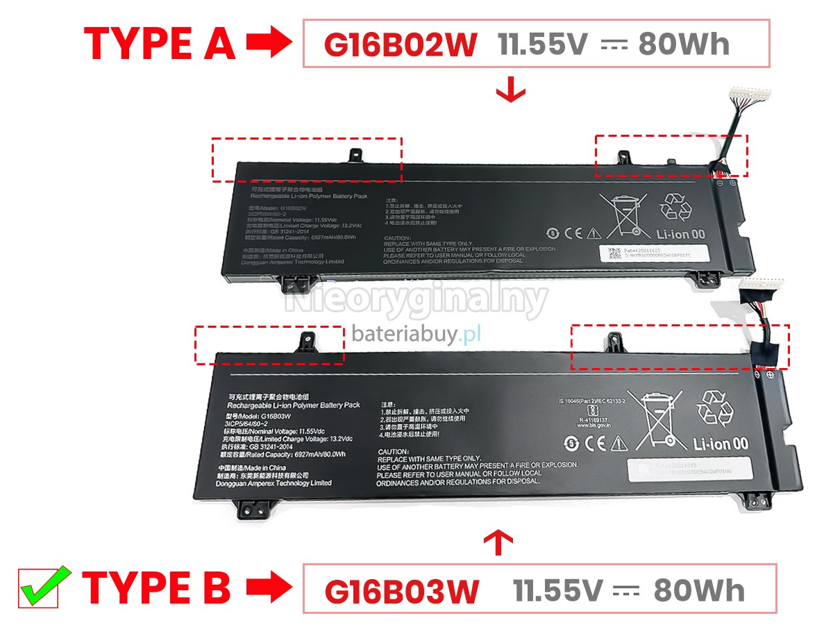 - Wymienna baterii w laptopie XiaoMi REDMI G16B02W G 2021 wykorzystuje najwyższej jakości akumulatory litowo-jonowe i komponenty do szybszego ładowania i dłuższej żywotności.